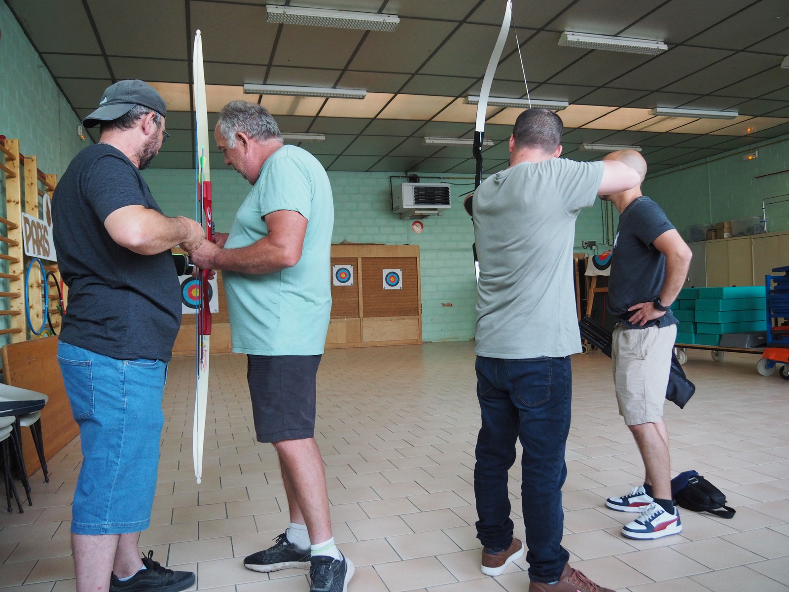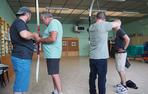 Dans la petite salle du complexe sportif de Mareuil "surchauffée" (temps chaud) Patrick et Michael ont initié jeunes et parents, tandis que le second Patrick (Trésorier) "racolait le chaland qui passait".